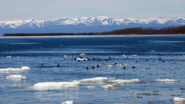 the lake becomes warm, at the beginning of the month the ice begins to descend, and when the southern and middle basins of the reservoir are already free of winter cover, the Northern one remains covered with ice. People watch the floating ice floes like in Antartica.